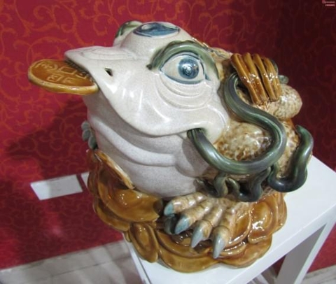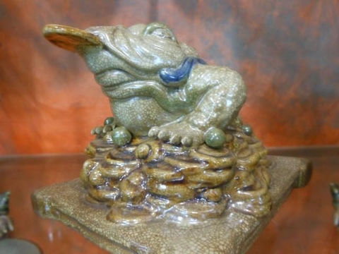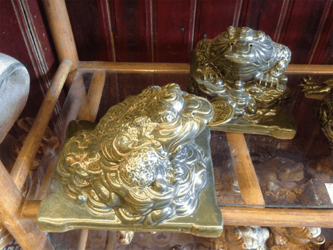 Ngoài các biểu tượng trên thì một bức tượng cóc ngậm tiền (hay còn gọi là Thiềm Thừ) cũng giúp cho gia chủ cầu được ước thấy. Trong phong thủy, khi rước Thiềm Thừ về nhà, gia chủ cần tiến hành khai quang, đặc biệt trong quá trình khai quang thì tốt nhất nên chỉ có một mình gia chủ thôi nhé vì cóc ngậm tiền sẽ chỉ phù hộ tiền tài cho người đầu tiên mà nó nhìn thấy.