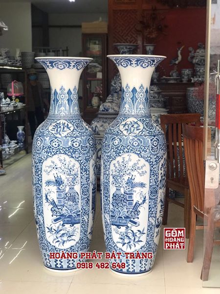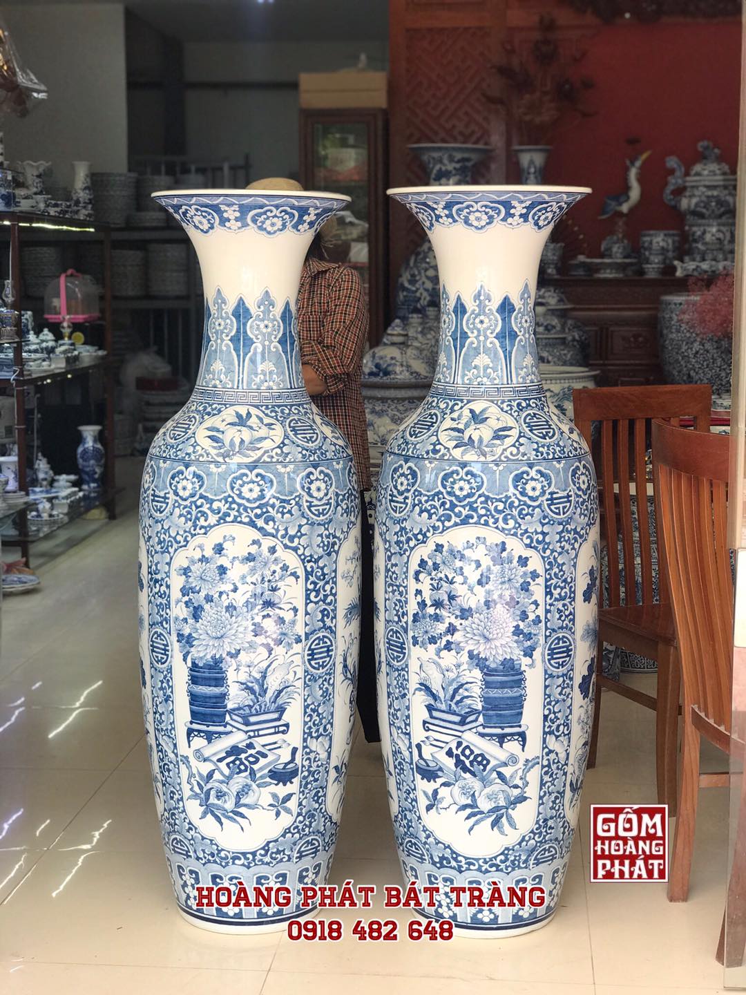 Lục bình sứ cổ đồ tứ cảnh vẽ kỹ cao 1.35 cao cấp Bát Tràng LBML15