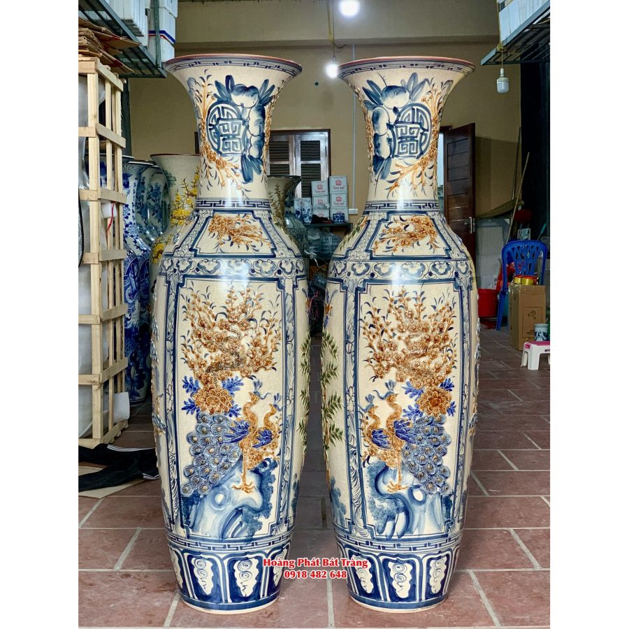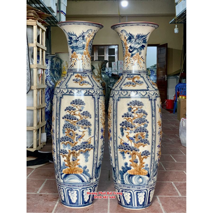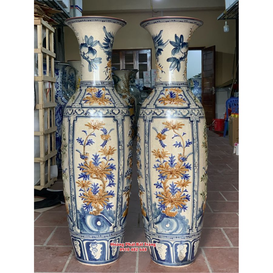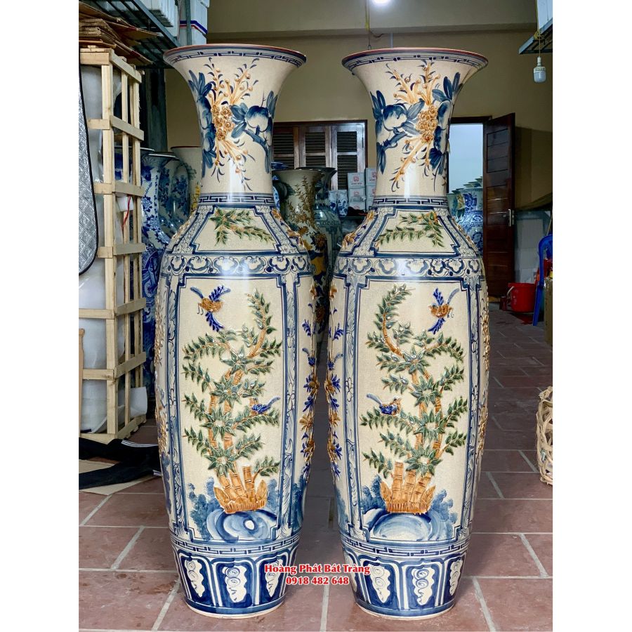 Lục bình sứ tứ quý men rạn đắp nổi cao cấp Bát Tràng 1m4