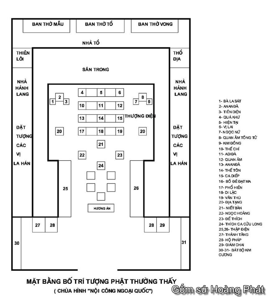 Hôm nay gốm sứ Hoàng Phát xin giới thiệu với mọi người những vị trí mà các vị Thần Phật hay tọa trong các đình đền hay chùa miếu, mọi người nên tham khảo để tăng thêm hiểu biết, cầu cúng sao cho đúng nhé.
